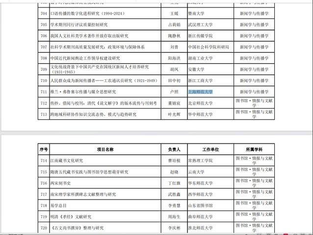 2023年10月23日,根据全国哲学社会科学工作办公室网站发布的信息:经过专家评审,2023年度国家社科后期资助项目共有928项获立项公示,上海师范大学共获立项公示7项,影视传媒学院获立项公示1项。(项目负责人:影传学院卢照老师;项目名称:《维兰·弗鲁塞尔传播与媒介思想研究》),2023年10月27日, 根据上海市哲学社会科学规划办公室发布的信息:经过专家评审,2023年度上海市哲学社会科学规划课题立项325项,上海师范大学共获上海市哲社科规划课题立项18项,其中,影传学院荣获立项1项(项目负责人:影传学院钟芝红老师;项目名称:《VR影像赋能上海文化创意产业发展研究》)。