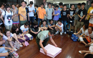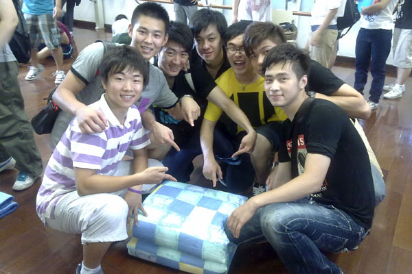 2010年9月9日下午,谢晋一零级全体新生在五教A231形体房集中,进行了互动性很强的内务学习—学叠军被,学生们自带被子,热情极高。