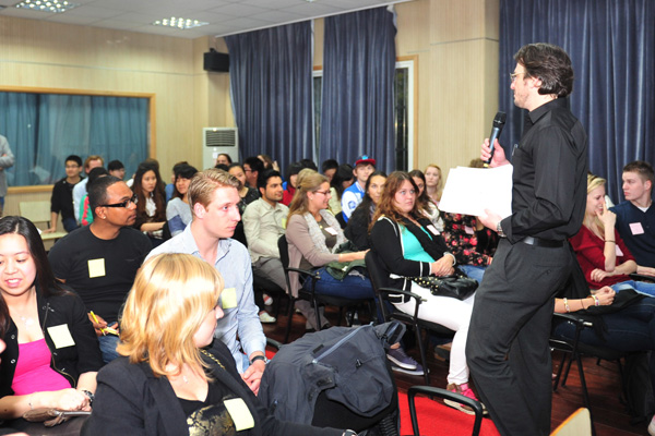 友谊交流会主要以游戏完成任务、表演、抽奖等形式调动中荷学生交流的积极性,中荷学生必须通过与不同人物的沟通、交谈才能顺利完成游戏任务。全场气氛热烈、交流融洽。荷兰学生对我院学生流利的英语表示惊讶,更对我院学生的专业产生了浓厚的兴趣,表示希望能继续加深了解。在短暂的交流后,中荷学生就成为了朋友,我院学生表示可以利用课余时间为荷兰学生介绍更多的中国文化与上海特色文化,此次友谊交流会不仅是一场口语交流的晚会,更是一场文化交流、情感交流,友谊交流的盛会。会后,Janvanmook教授表示,今年是第四次来上师大进行学术交流,而与我院则是第一次举办友谊交流会,这样的中荷学生交流会形式非常新颖深受荷兰学生的喜爱,希望以后每年都能与谢晋学院举办类似的活动,促进两国学生的友谊与交流。