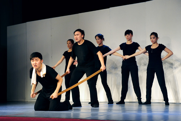 肢体剧汇报演出包括《王军王强王贵强从军记》和《高兴》两个剧目,分别由师生共同自编、自创、自导于麦家和贾平凹的同名小说,尖锐的素材配合真实诚挚的表演赚足的观众的笑声和泪水。教学片断演出,共有四个片断,均为戏曲片断,分别是《桃花扇》《十五贯》《拾玉镯》《柜中缘》。
