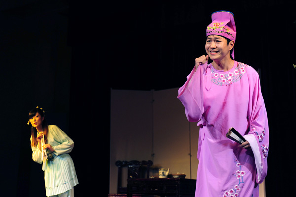 6月20日晚6点30分在东部c座多功能厅进行了2010级表演本科班的期末汇报演出。领导们非常重视每一次的汇报演出,当晚院内各领导都莅临观看。本次演出是他们第二批的教学片断,共有四个片断,均为戏曲片断。分别是《桃花扇》《十五贯》《拾玉镯》《柜中缘》。长达两个月的工作时间,同学们做了充分的准备,在舞台上激情四射,活力十足。课上课下反复的排练,功夫不负有心人,最终圆满落幕。受到学院的领导们的一致好评。(高颢瑜、冷凤娇)