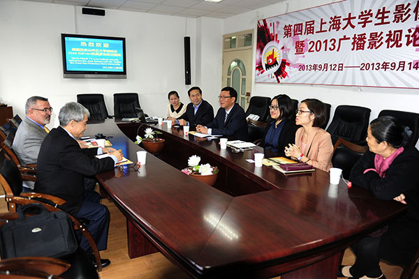 会谈中,赵院长向两校领导汇报了自2010年两校签订交换生合作项目以来,学院连续四年成功开展的暑期国际纪录片工作坊的具体情况以及所获成果。
