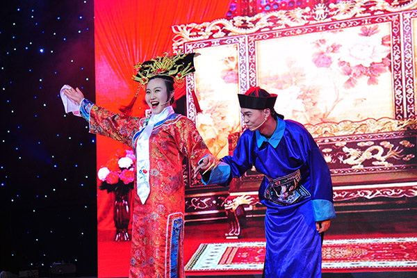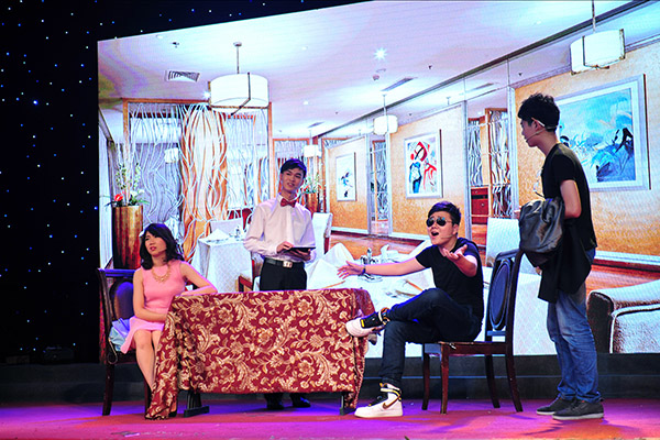 演出上还播放了13级主持班的同学们自编自导自演的普通话普及宣传片,在轻松愉快的氛围下向观众们阐释了学好普通话的重要性。
