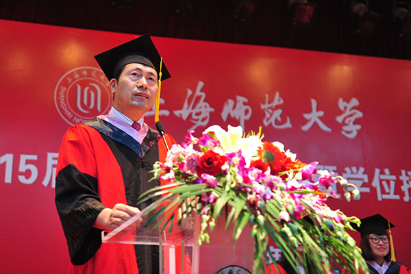 2015届上海市优秀毕业生武班笑薇等同学为这场华丽盛宴拍摄制作了毕业季短片《遇见你,遇见青春》,一句句真诚的祝福和毕业寄语,一幕幕难忘的场景令人动容、催人泪下。毕业生代表刁秋宇、教师代表王砾玉、优秀校友我院2007届毕业生戎立斐以及院长赵炳翔在音乐声中依次上台发言。赵院长曾在2011年给每位学生上“开学第一课”,在毕业典礼现场又给大家精心献上“最后一课”,他历数了同学们四年来的种种历程和荣誉,他强调学习艺术的我们,从“解放天性”的第一课开始,就鼓励每一个人的全面个性发展,激发大家的创新创业意识。希望毕业生能够时刻秉承谢晋精神中“祖国利益,高于一切”的使命感、“艰苦奋斗,百折不挠”的信念感、“追求探索,永不停息”的时代感和“质量第一,力求精品”的责任感,做一个合格优秀的谢晋人和师大人!热情洋溢而又情真意切的发言使得现场不时爆发出热烈的掌声。这一课也将是毕业生们走上社会重要的一课。