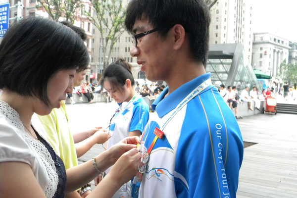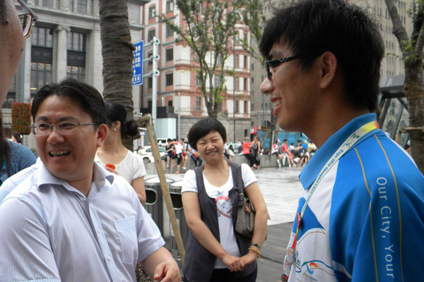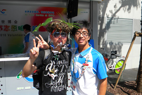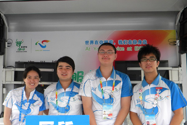 十几天的过程当中,有的不仅仅是这些感受……看到这些来自各个地方的游客,能不能找到你自己的身影,他们来自不同的阶层,受过不同的文化,生活在不同的环境,经济实力不同,你能不能去包容他们呢?你会不会要一点烦感呢?不要这样,千万不要这样。他们的眼神不会说谎,看到他们那些无助的眼神,你需要做的就是包容和细心回他他们的问题。还记得因为温度过高身体不适的那个女生,脸色瞬间苍白,皱起的额头,难受的表情,你还要考虑什么呢,只需要的将他搀扶,找到所有能用的药品,看到干渴的孩子,就算把你的水给他也没什么好说的……总之,总会有出乎你的意料之中的事情在不断的发生,我想,只有保持一颗不断学习的心,和充满激情的服务,才会让你真正体验到这个岗位的很多东西。有时候,你的一个不经意的微笑,会伴随着他们很久很久,度过整个上海的旅程,度过好久好久。“四海之内皆兄弟”我感受过,在他乡异地能得到这样的微笑,是多么欣慰和感动,所以,向告诉接下来的志愿者们,一定要有这份包容,当然,结束了还是要继续完善的,才有成长嘛。