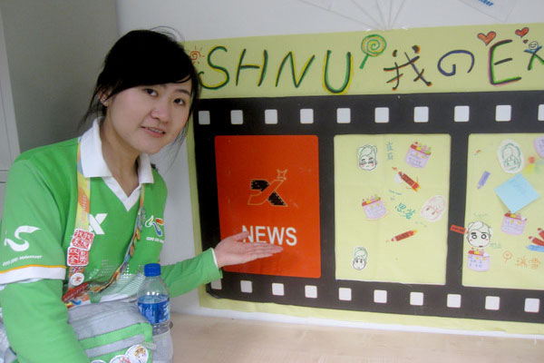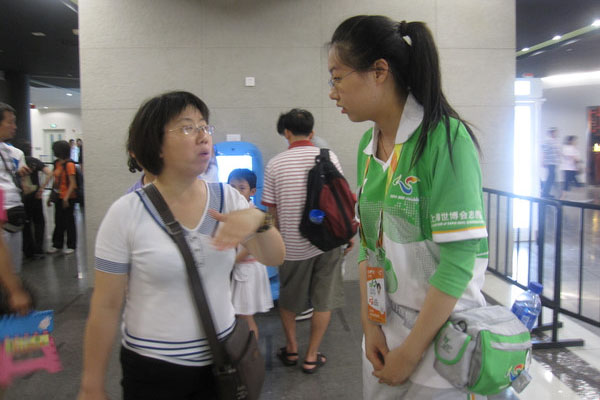 演艺中心六名志愿者,亲自设计了关于谢晋学院的世博志愿者徽章,并送给老师和一同工作的建工学院的同学们,获得了大家一致好评。我们工作的三个岗位渐渐成为了演艺中心的热门岗。何为热门岗,到了演艺中心你一定会了解,在地下一层的冰场岗,海宝岗,以及自动扶梯岗位,是游客聚集,工作人员最爱去的地方,这里欢声笑语不断,这里没有难不倒的问题,在这里谢晋学院的热情小分队以热情的服务态度,特别的引导方式,舒缓了游客们疲惫的心情,让大家带着无限轻松与快乐继续参观。