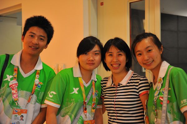 第三,团结!我们学院的49人是一个整体,我想说身为学院的一员而感到骄傲。服务期间,当自己下岗时鼓励在岗的同学,对他们说一句辛苦了,就相当于给他们打气,在交通岗的同学顶着烈日时,送去一瓶水也是他们继续坚持的动力。在演艺中心发生突发事件时,我们49人坚守岗位,及时疏通与撤离,并且良好的做好保密工作,都是团结的表现,也等于说是一次对我们学院志愿者素质的考验!