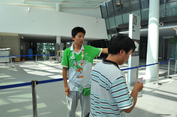 第一,知识!14天前,自己信誓旦旦,胸有成竹的踏进园区,本想着服务是件很容易的事,但是当你面对形形色色的游客问的多种多样的问题时,你会意识到,自己的任务是多么艰巨。我想,做一名志愿者,要牢记自己的责任,最重要的是,不能给游客指错路!因此,我每天都去交通岗学习,记住游客常问的问题和收集一些冷门的问题。只有不断充实自己才能服务他人。我也因为这样而熟知了园区的各种交通和园外的地理情况,当游客问自己,自己能很快回答时,心里总感觉甜甜的。