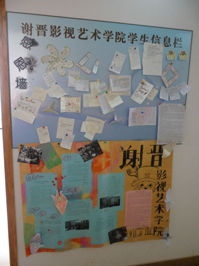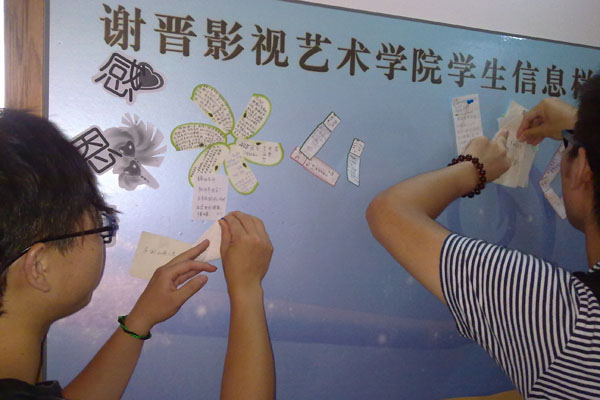 在第26个教师节来临之际,我院2010新生满怀感恩之心,发挥自身特色,在学院办公室门前自己动手制作了“感恩墙”,上面写满了学子们对于师长们的篇篇谢意和声声寄语。活动现场人头涌动,气氛热烈,使学生在抒发对老师谢意的同时,也接受了感恩教育。