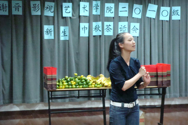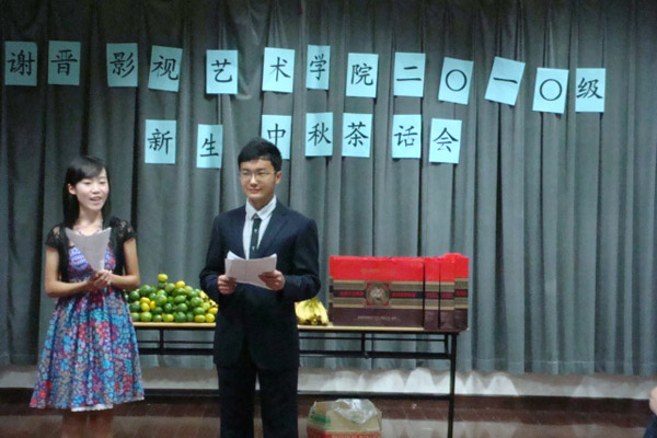 茶话会中,师生一起参与各种集体游戏,比赛胜出的获得小奖品、淘汰输的吃水果大餐,大家增进了友谊,加深了了解;表演主持班的同学将满腔的激情融会在快板、舞蹈、歌唱之中,一展风采!广编动画班的同学拿起照相机、摄像机,记录下这美好的中秋之夜!充分体现了我院联合打造的品牌特色和团结向上的精神风貌。茶话会气氛热烈,一个个学生脸上洋溢着幸福的笑容,回响着爽朗的笑声……