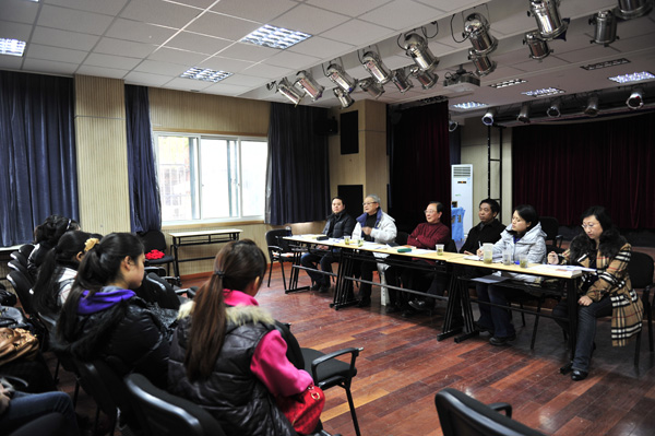 本次教研会是在上海市语言文字水平测试中心与谢晋影视艺术学院邱乙哲老师为项目负责人的主持专业语言教研室申请的横向科研项目——语言艺术类学生普通话水平测试培训策略的基础上,针对2009级主持专业学生进行教学研讨,通过摸底测试、摸排出每个学生的语言问题,探讨有针对性的教学方法,通过专业训练让学生通过国家级普通话水平测试较高等级一级甲等比例增高,从而拓展今后就业的道路。两天的教学研讨活动中,老师们认真仔细的对学生进行测试并分析出每位同学的语音问题和语言表达上的欠缺之处,研究探讨每位学生的培训策略,这些教研会的探讨出的教学方案将在本学期普通话水平测试培训中。