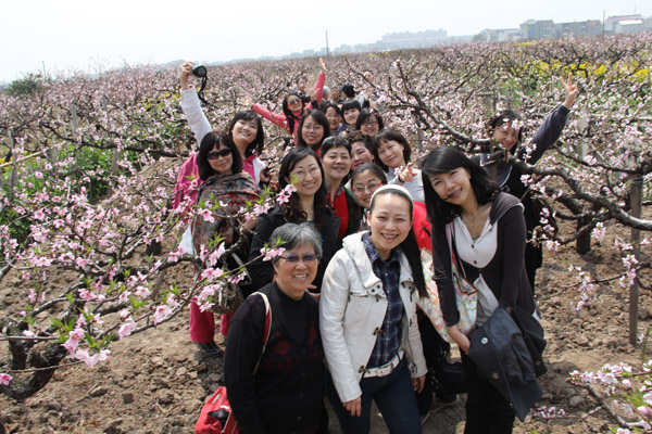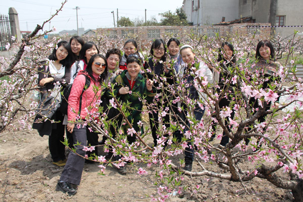 春日里,田野中阡陌交通、桃花灿烂、油菜花盛开,教职工们在其中参观流连,共同感慨农村的巨大变化和祖国的繁荣昌盛。在农家里,学院为本学期生日的老师共同庆祝生日,气氛温馨感人。集体过生日也是学院工会的特色活动之一,每学期一次,让老师们在集体这个大“家”找到归属感。另外,今年的三八国际劳动妇女节时恰逢学院艺术类招生考试,借此次全院外出考察之际,为学院的女同胞补过妇女节并共同庆贺学院2010年齐心获得的诸项荣誉:校三八红旗集体、校巾帼文明岗和校优秀教工小家。