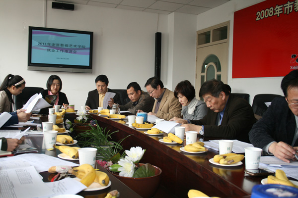 4月22日中午11点30分,教苑楼A座202会议室召开了谢晋影视艺术学院2011年就业工作推进会。出席本次会议的有:校学工部副部长倪峰、院长赵炳翔、党总支书记高亭、党总支副书记兼副院长孙雅艳、副院长丁宏法、邱乙哲、徐君,学院就业办副主任董妍均、赵富国老师,以及广编专业负责人王平老师、表演专业负责人康爱石、动画专业负责人强小柏老师和各专业毕业班带班老师、毕业班辅导员。