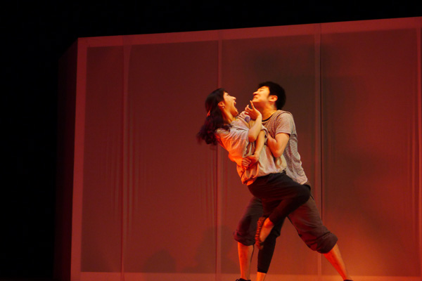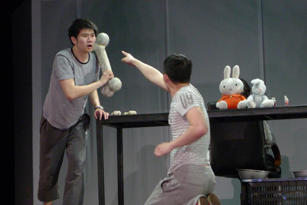 在这个戏中,大量的肢体语言成为绝对的主角。4位演员在人和狗、兔之间穿梭,他们不再用人类的语言进行交流,参与了戏剧表达的是他们身体的每个部位。演员们表现出来的近乎动画般的效果,引来阵阵笑声,四天的演出场场爆满。