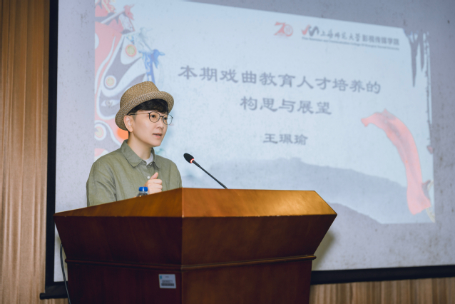之后,王珮瑜老师谈了本期戏曲教育人才培养的构思和展望,希望能够运用多年来在戏曲教育方面积累的深厚资源和经验,不仅从声、台、形、表等四个方面提升学员的戏曲素养,更要在金秋十月的第二轮培训中,结合新出版的非统编义务教育五四制初中戏剧教材戏曲单元的篇目,教会老师们如何提炼重点进行课堂讲授。