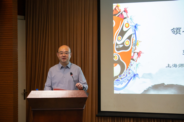 上海师范大学张峥嵘副校长代表主办方率先致辞,他着重指出, 师大杰出校友王珮瑜老师和团队成员将联袂为学员们献上戏曲教育的饕餮盛宴:这其中包括王珮瑜老师的精彩讲座,戏曲观摩和导赏,唱念和化妆教学,更有在宝山瑜音阁戏楼的现场互动教学……而有关下一期培训的内容,更是会和中小学戏曲教学紧密结合,令人向往和期待。他还说道,美丽的上海师大即将迎来她的七十华诞,各位参加培训的学员对传承弘扬中华优秀传统文化的拳拳之心是为师大庆生的最佳献礼。