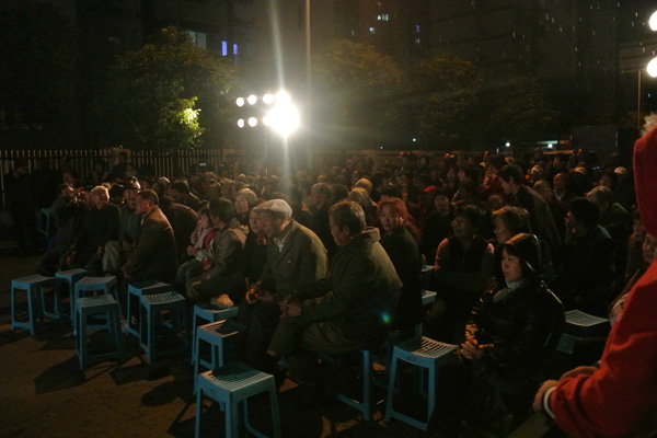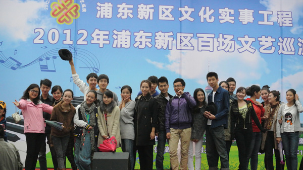 当晚,在淅淅沥沥的小雨中,在同学们一声声吆喝声的表演中,打开了“非遗进浦东”巡演的序幕。越下越大的雨丝毫没有阻止大家的表演热情,学生们融入文化内涵的表演赢得了社区观众一次次的热情掌声。整台晚会在民歌联唱和集体舞蹈中达到高潮。