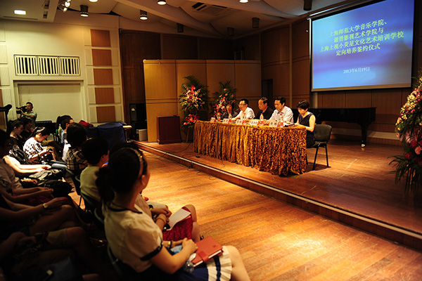仪式上,三方领导共同签署了《上海师范大学音乐学院、谢晋影视艺术学院与上海上视小荧星文化艺术培训学校定向培养合作协议》。此次联合定向培养项目的签署,宣告了三方定向培养合作的开始,为两大艺术类学院毕业生抢占上海儿童艺术教育岗位开辟了新的渠道。