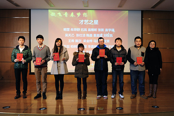 12月25日,正值圣诞佳节之际,我院在徐汇校区文苑楼二楼报告厅举行了“放飞青春梦想”上海师范大学谢晋影视艺术学院2013-2014年度颁奖典礼暨班导师总结会。我院院长赵炳翔、党总支书记高亭、副书记兼副院长孙雅艳,副院长丁宏法、邱乙哲,专业负责人王平、强小柏、康爱石以及各班班导师出席,我院全体同学参加了此次大会。