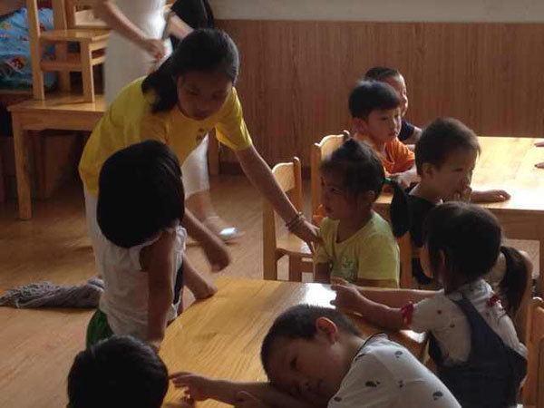 在爱心学校里面,教员们除了教授沪川幼儿园的孩子们播音、表演专业的知识外,更多的时间是辅助幼儿园老师们照看小朋友,帮助刚进入幼儿园开始独立生活的孩子们打饭、倒水、搬床、哄他们睡觉,让他们在陌生的环境中体会到家的温暖,帮助他们尽快的适应幼儿园的生活。他们的角色随时变化着,哪里需要便随时奔向哪里,在这角色不停变化之间,我院的教员们都获得了属于自己的成长。大家都觉得沪川幼儿园的孩子们就像自己孩子一样,看着他们的笑脸就真的不觉得累。教员们每天带着孩子们穿行在大街小巷中,渐渐明白了肩头这份责任的沉重,渐渐懂得了成长的不易。