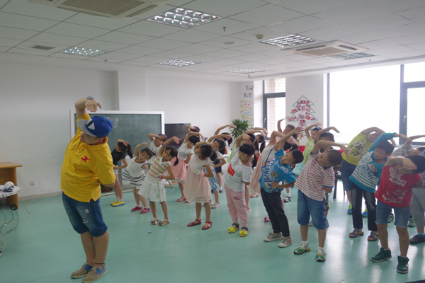 第二节课,王然老师对节目进行了最后操练,这也是他本人对孩子们在暑假的最后一节课。七彩小屋负责人谢歆亲临现场,用手机记录下了孩子们的成熟表现。伴随着旋律,孩子们整齐的排好队伍,跟着王然老师的手势开始了配乐手语诗朗诵《让我怎样感谢你》,孩子们用自己的手势动作,响亮的声音表达了对父母的感恩之心,尽管只是彩排却沉浸在其中。之后复习了两个舞蹈节目《爸爸去哪儿》和泰国舞蹈《吉祥如意》,王然老师用自己的专业素养教会了孩子们各种舞蹈动作,也对不同国家的舞种进行了了解。孩子们在学习中得到了快乐,这也是我们老师最大的收获。