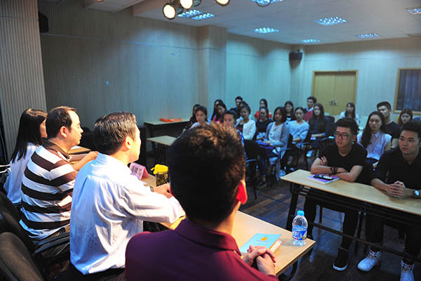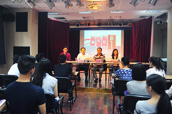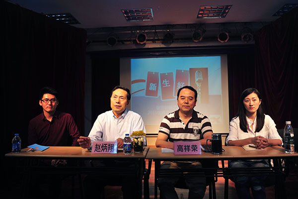 爱与期望齐飞,梦共金秋一色。923日下午,我院2105级播音主持专业新生交流会在教苑楼B101教室举行,会议由赵炳翔院长主持。会上赵院长与播音主持专业主任高祥荣老师和2015级播音与主持艺术专业新生进行了亲切的交流。赵院长首先对我院的相关发展建设情况进行介绍,也对大一新同学寄予厚望,希望各位同学能够打好扎实基础,不断提高专业水平,着眼于长远,脚踏实地的做一名德才兼备的艺术类大学生。赵院长还表示,当代大学生更要有团队意识,以及“一专多能”的优秀素质。随着新教学大楼的竣工完善,演播室、 小剧场等设施将陆续投入使用,学生在实践中将拥有更多提升专业技能和本领的机会。随后高祥荣老师对主持专业的培养目标、课程结构、软硬件建设方面进行了全面的介绍,并让新生观摩了往届播音主持专业的演出汇报视频,使同学们对下一步的努力目标和方向有了较为直观的认识,高老师希望各位同学能够破茧成蝶,脱颖而出。此外,今天的新生交流会上,还有两位研究生师姐师哥---09主持的陈佳琳和11主持的谢宁,分别与新生交流学习、生活心得和感悟,引起了同学们的共鸣,激发了同学们的学习热情。