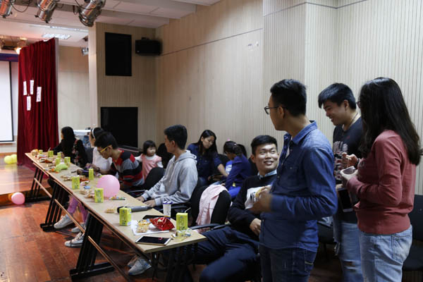 一首《我和我的祖国》拉开了此次红歌会的序幕,大家围坐在一起,在活动现场有各式各样的小吃零食以及可口的饮品供大家自由享用,现成气氛十分融洽。红歌会上,《故乡是北京》、《在中国大地上》、《父老乡亲》等一首又一首人们耳熟能详的红歌作品一次次的引发大家的共鸣。孙雅艳老师还与武文帅同学合唱了一首《五星红旗》点燃了全场气氛。在活动现场除了嗨爆全场K歌节目之外,大家还愉快话家常,品美食,感受着如亲人般真诚与美好。