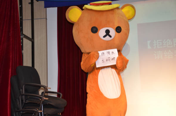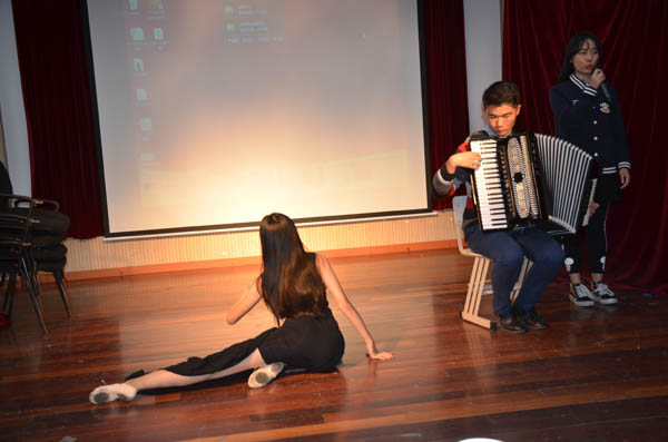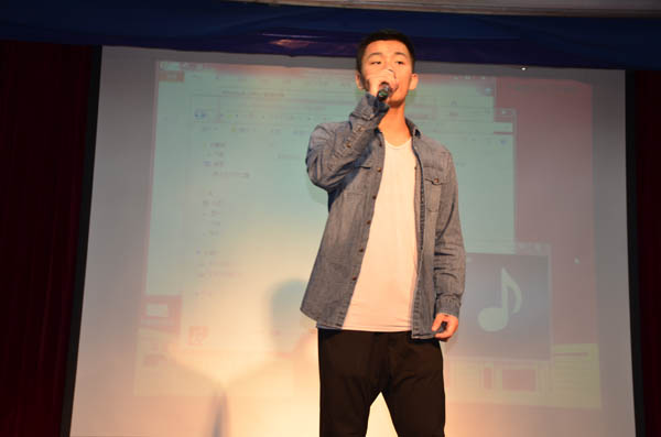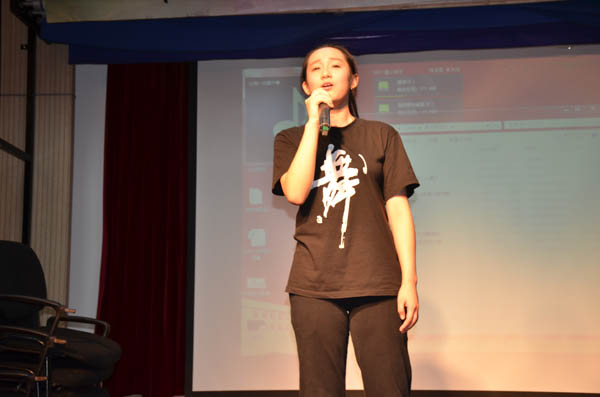 15级广编(2)班丁怀鑫的开头歌舞《小苹果》瞬间嗨动全场,一起上场的动漫人偶熊生动活泼的舞动更是萌翻了观众。随后,他用幻灯片为大家介绍了该班团支部开展的系列活动,并在现场号召发动以“拒绝陌生,给一个拥抱”为主题 的活动,在带给大家欢乐的同时也给予观众精神洗涤。14级动画专业的吴佳钰利用专业优势现场为大家放映自制动画,欢快的旋律、有趣的故事,获得了观众的一致好评。15广编(1)班蔡鹤铭采用手风琴和舞蹈相结合,将《莫斯科郊外的晚上》跃动起来,为观众带来一场视觉盛宴。14级表演唐瑞敏的一首《让我一次爱个够》将比赛现场带入高潮,台下观众跟随其歌声带入另一个世界,深深陶醉其中,颇有“余音绕梁,三日不绝”之韵。
