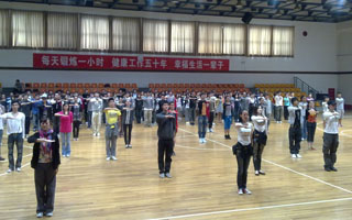 10月3日下午一点,在徐汇校区球类馆三百多名参加世博会闭幕式演出的演员们精神抖擞、状态饱满的投入第一次合排,演员里大多数是在读的大学生,也有不少社区的中老年朋友。谢晋学院的演员共有25名,其中20名为一零级主持班新生。