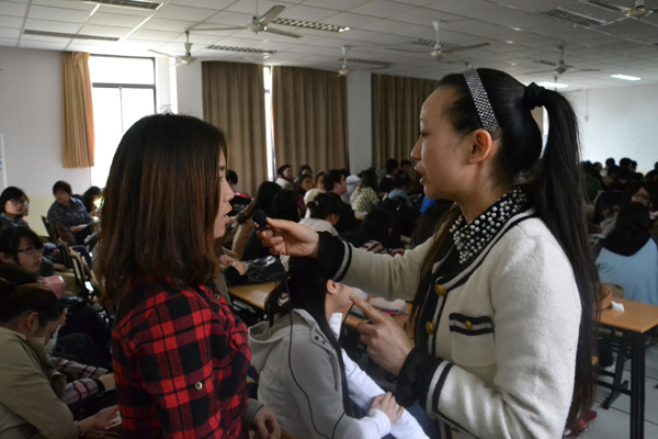 2012年4月18日下午2点,上海师范大学谢晋影视艺术学院副院长兼副书记孙雅艳老师来到奉贤校区第四教学楼A座119,与来自我院大一年级的同学约200余人齐聚一堂,动员大家进行无偿献血。