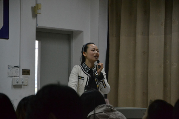 孙雅艳老师为大家讲了一个故事:“在09年的无偿献血活动中,有一位来自澳门的女生坚持要献400cc,由于政策原因被护士拒绝,但她并没有放弃,来到我这里为她写了一张批示,在我问她原因时她说到:“也许有人会因为我少献的这200cc而失去生存的机会,所以我要尽力而为。”在场的所有人都为这位来自澳门的女孩所说的话深深地感动了。