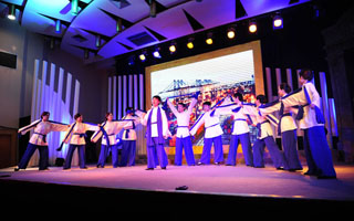 与会学者于6月2日实地考察了浦东三林地区非物质文化遗产保护情况,当晚我校谢晋影视艺术学院10级播音与主持专业全体学生表演了“‘一零·引领’——民俗表演专场”。我校党委书记陆建非、党委副书记黄刚、副校长丛玉豪、浦东新区文广局长夏煜静、中外民俗文化研究专家学者、我校有关职能部门领导及学生家长观看了演出。同学们精彩的演出赢得了领导和中外专家学者等的高度评价,陆书记这样评价到:超强简版无所不包,谢晋师生无所不能,文化之旅无所畏惧,华夏文明无往不胜!
