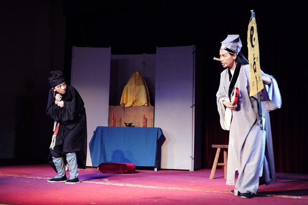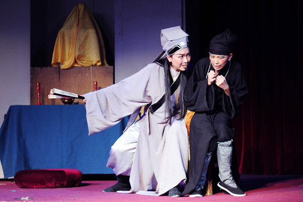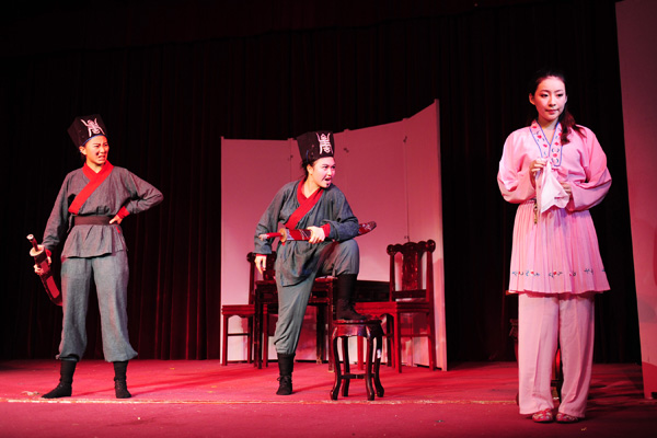 6月20日晚6点30分在东部c座多功能厅进行了2010级表演本科班的期末汇报演出。领导们非常重视每一次的汇报演出,当晚院内各领导都莅临观看。本次演出是他们第二批的教学片断,共有四个片断,均为戏曲片断。分别是《桃花扇》《十五贯》《拾玉镯》《柜中缘》。长达两个月的工作时间,同学们做了充分的准备,在舞台上激情四射,活力十足。课上课下反复的排练,功夫不负有心人,最终圆满落幕。受到学院的领导们的一致好评。(高颢瑜、冷凤娇)
