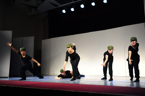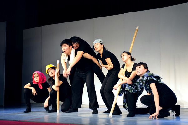 肢体剧汇报演出包括《王军王强王贵强从军记》和《高兴》两个剧目,分别由师生共同自编、自创、自导于麦家和贾平凹的同名小说,尖锐的素材配合真实诚挚的表演赚足的观众的笑声和泪水。教学片断演出,共有四个片断,均为戏曲片断,分别是《桃花扇》《十五贯》《拾玉镯》《柜中缘》。