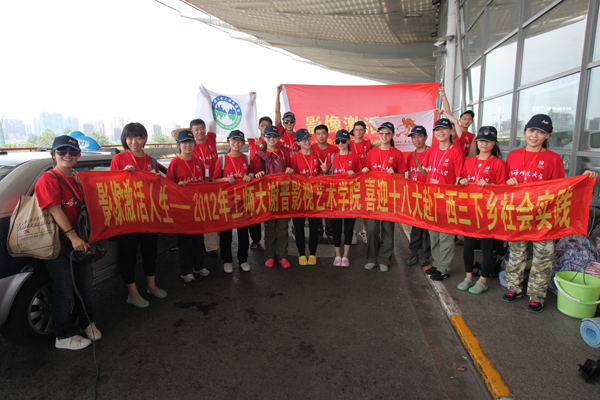 2012年7月6日,“影像激活人生,爱心点亮青春”,2012年上海师范大学谢晋影视艺术学院喜迎十八大赴广西三下乡社会实践团今日出征。本次实践活动在上海师范大学教育发展基金会、爱盟基金、广西人在上海联谊会、黑皮驴舍、校团委等部门和组织的大力支持下,由谢晋影视艺术学院副书记副院长孙雅艳老师和分团委书记姚萍老师共同带领18名谢晋学子奔赴广西进行为期12天的三下乡社会实践活动。此次活动随行的还有上海影达文化传播有限公司的专业拍摄团队以及来自社会各界的爱心人士。