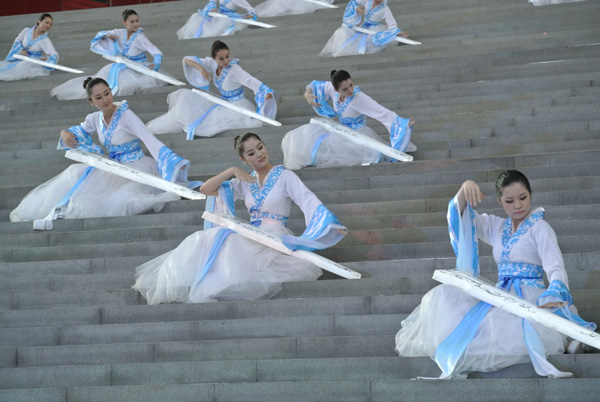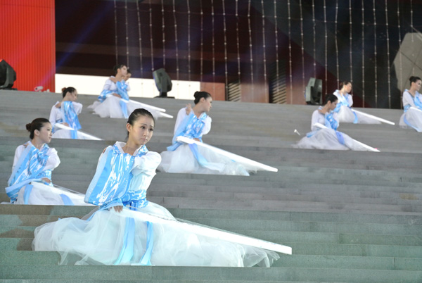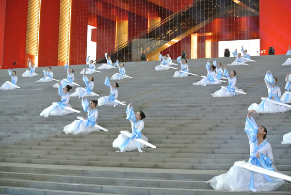 9月29日晚,《盛世华章——中华艺术宫、上海当代艺术博物馆开馆盛典》在黄浦江岸世博轴边隆重上演。当晚的中华艺术宫南广场,灯光璀璨,群星起舞,煞是好看。而在这灯火辉煌之时,我院11级大部分女生以及10级主持和部分表演班的80名女生身着华丽裙袍,手持古琴,与投影面上的艺术画作交相辉映,融入到一片静谧的水的世界之中。