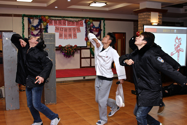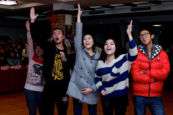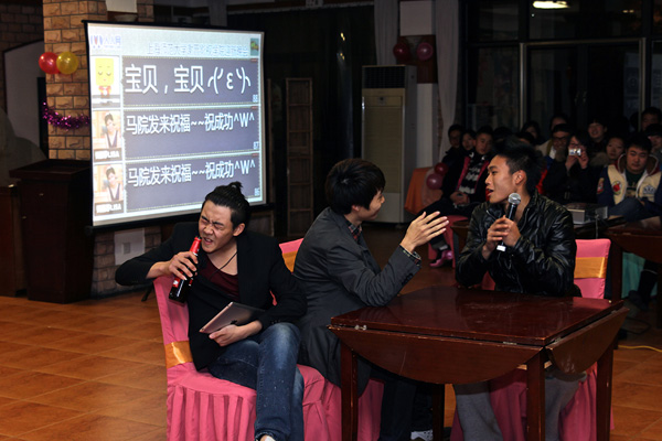 晚会现场气氛异常火爆,四个专业同学纷纷献艺,共庆新年的到来。表演班的小品《谈判》、《小杨生煎》让台下的观众乐开了怀,而全新演绎的《我爱台湾岛》、《最炫民族风》更别具风格,赢来雷动掌声;主持班精彩的歌曲串烧和舞蹈《Trouble Maker》让观众们拍手叫好,《绕口令播报》则为我们展示了扎实的专业素养;动画班的精彩的舞蹈《Dream word》和歌曲《人质》也给观众留下了深刻的印象;编导班的同学也毫不示弱,小品《相亲相爱的一家人》逗得台下观众合不拢嘴,广编班田雨禾同学更是以一曲《天路》将晚会推向高潮!晚会还有趣味抽奖环节,特等奖自行车最终被表演班幸运儿吴蝶抽取。晚会期间,台下欢呼声、尖叫声不断,气氛热烈火爆,真可谓是“饕餮视觉,步步晋心”!