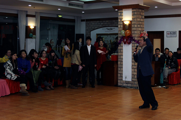 12月28日晚六点整,奉贤迎宾楼内热闹非凡,伴着主持班女生活力四射的开场舞,学院迎新年晚会拉开了帷幕,奉贤区工作党委、管委会副书记、副主任李明,学工部副部长张益,保卫处副处长林洁,资产处副处长李雯,后勤实业中心副总经理袁敏捷、张红英,我院院长赵炳翔,副书记副院长孙雅艳,副院长丁宏法,各专业负责人及奉贤校区各部处负责老师等近20位领导和老师光临现场。我院院长赵炳翔致欢迎词,校领导李明老师致新年贺词。
