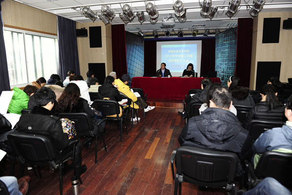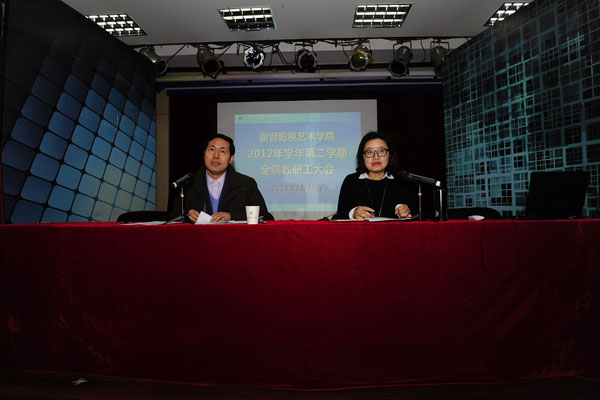 教学科研工作坊的申报工作由教学副院长邱乙哲老师主持,共有来自表演、主持、动画三个专业的康爱石、姜杉、王晶晶、倪莉、陈劲松五位老师演说了申报项目。老师们申报的项目紧贴一线教学,覆盖面广,有深入创新。其中涵盖了喜剧教学、表演教学、主持人即兴言语口才、中国民间艺术与Flash动画的应用研究、动画剧本创作与经典名著改编五大层面。竞选演讲生动热烈,让在场的老师们惊喜连连,难分取舍。最终将结合老师投票和党政联席会议集体讨论确定最终入围的申报项目。
