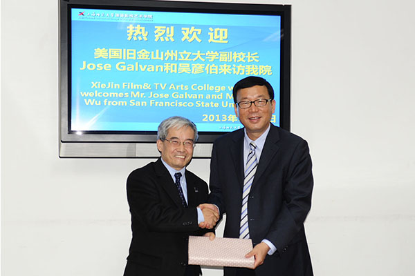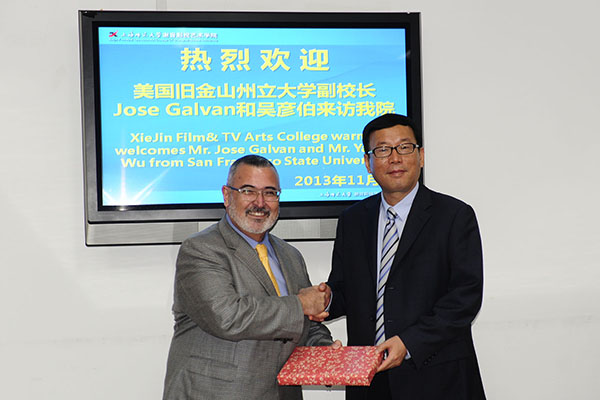 Galvan副校长对每届纪录片工作坊的学生作品以及所获得的多项国际大奖表示满意和认可。他表示,11月中旬恰逢旧金山州立大学举办国际教育周活动,建议选派上师大优秀的学生作品进行展映,让美国学生近距离了解上海,了解上师大。同时Galvan副校长表示两校如能轮流互办对方学校的国际教育宣传活动将有助于两校学生更直观、更零距离了解两校的合作项目。高建华副校长表示十分赞同Galvan副校长的观点,并希望旧金山州立大学以与谢晋影视艺术学院学生的交流合作为开端,与我校建立多方面、深层次、更长久的交流与合作关系,节省资源,优势互补。同时也欢迎对方派教授、教师、学生以各种形式来到我校进行交流。(婉婉)