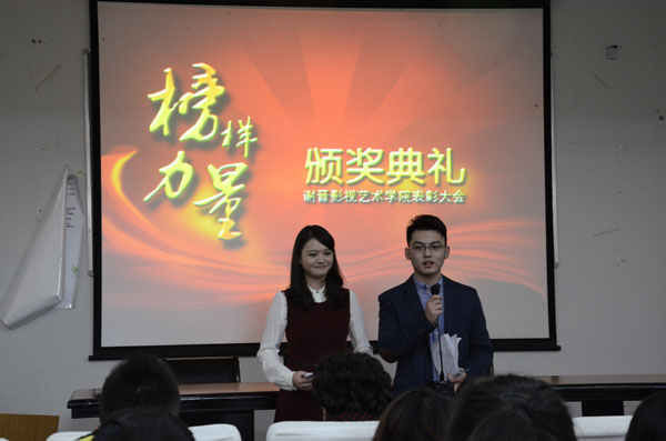 此次颁奖典礼首先隆重表彰了我院的志愿者们,我院的志愿者们在各类志愿活动中积极参与,获得了学校的肯定,并且在此次校志愿者风采大赛中一举获得了亚军的好成绩,这得到了孙雅艳老师的高度评价!除此,谢晋学子也积极参加校运动会,并且得到了多项殊荣。接下来表彰了积极参与科研活动的同学们,共有4组同学获得了我院科研孵化奖!紧接着学院对班级积极分子以及优秀班干、优秀学生干部进行表彰。动画班的董英英同学上台介绍了自己积极参加班委的经历;广编班祖梦雅同学分享了她作为班长带领同学参加每次活动的经历;表演班的任潇雨同学为大家带来了一段视频,充分为大家展示表演班平时上课时认真、刻苦的精神,深刻感染了全院其他学子。主持班洪宸、广编周楚垚也发表了获奖感言。最后,由学生会主席武文帅发言,他希望各部门之间能够共同合作,共创美好佳绩。