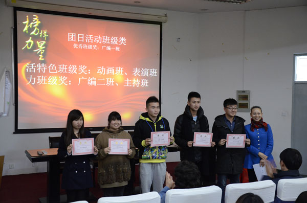 12月18日下午,2013级学院颁奖典礼在四教八角楼隆重举行。此次颁奖典礼为表彰2013级谢晋学子在第一学期所作出的辛勤奉献。13级全体学生参加了颁奖典礼,副书记副院长孙雅艳,办公室副主任张慧芳老师,辅导员李川、马令利老师出席了本次颁奖典礼。