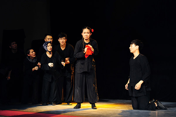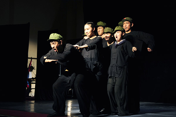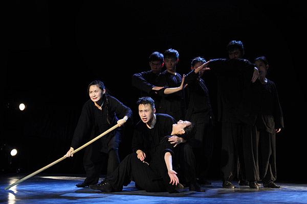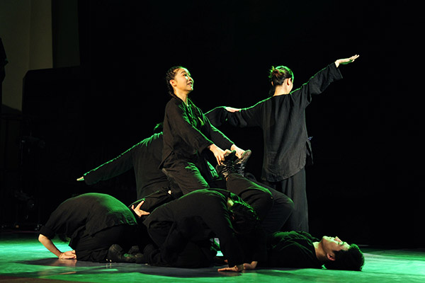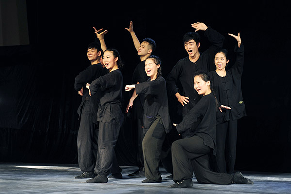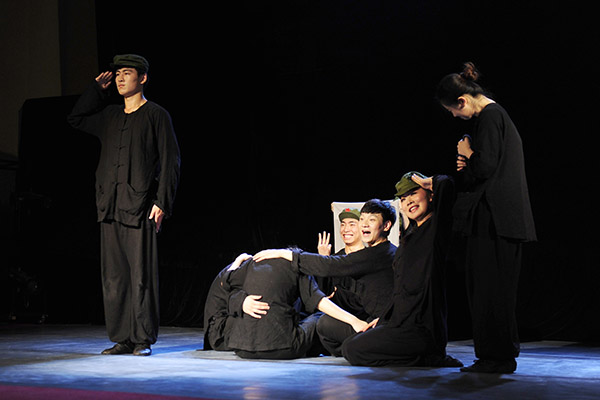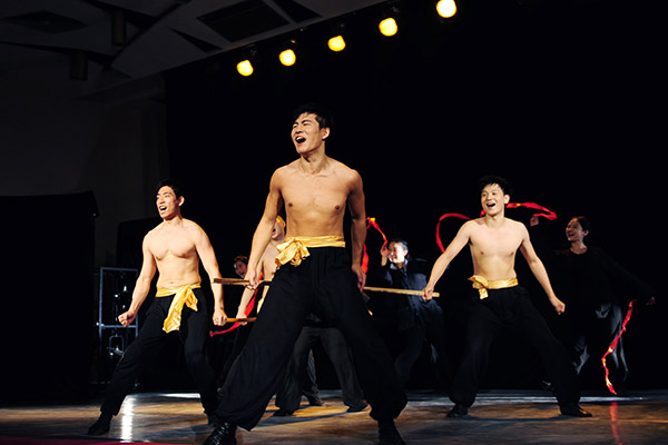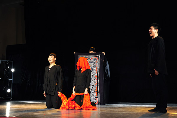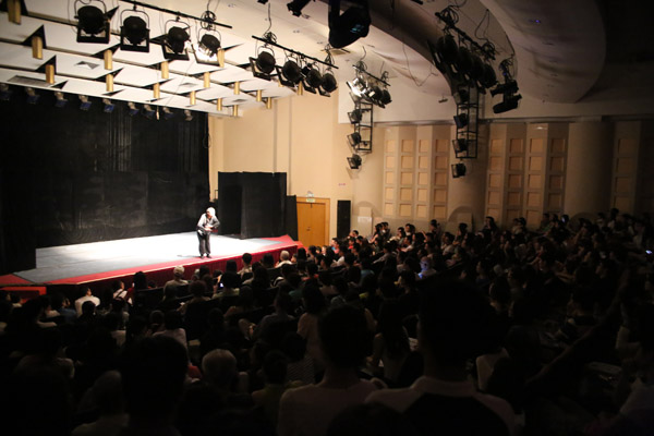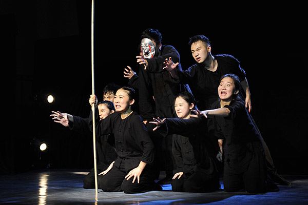 同样的教苑楼多功能厅也呈现了火爆的场面,在表演专业青年教师唐剑威的指导下,11级表演专业师资方向的学生为大家带来了肢体剧《蛙》。演出开始一个小时前,由于场地有限,不少观众被拦在了剧场外。