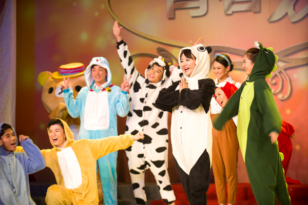 演出上还播放了11级主持班的同学们在课外走进幼儿园、敬老院、以及上海盲童学校的记录视频,同学们为这些孩子、老人以及残障人士奉献了自己爱心,也充分彰显了11级主持班的同学们与爱同行的精神。