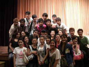 09年9月28日,奉贤校区的大礼堂坐无缺席。在学院副院长康爱石的陪同下著名演员刘威正在与谢晋09级表演班学生们亲切交流,促膝长谈。