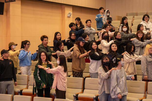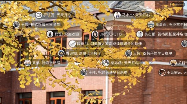面对心理健康问题应找到情绪产生症结,正确引导并疏解心理情绪是解决心理问题的切口。辅导员韩笑老师分析了研究生阶段学生的主要压力源,鼓励同学们正视心理问题,积极寻求帮助。在韩老师和赵老师的现场带动下,同学们通过接龙捏肩放松身体、两两组队比拼反应抓手等一系列的小游戏在紧张的学习生活之余缓解了同学们压力。正确自我认知、包容自我情绪是疏导心理问题的基础,在最后的互动环节,大家通过“研途芳华,心语绽放”线上实时祝福活动,研究生同学们互相送上了祝福,相互激励积极向前,向阳而生。