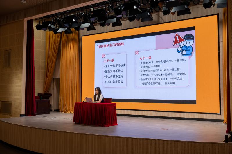 安全是一切的根本,学生安全保障是校园整体安全之基。为进一步提升学生安全防范意识,将保障人身安全与财产安全深植学生内心,筑牢安全防线,研究生兼职辅导员赵彦佳老师在大会上强调了学生宿舍安全,尤其要注意消防安全;并建议同学们妥善保管贵重物品,防止失窃;注意辨别网络信息,谨防电信诈骗。安全至上,同学们应保护自身人身财产安全,保护校园安全,共筑安全健康生活。