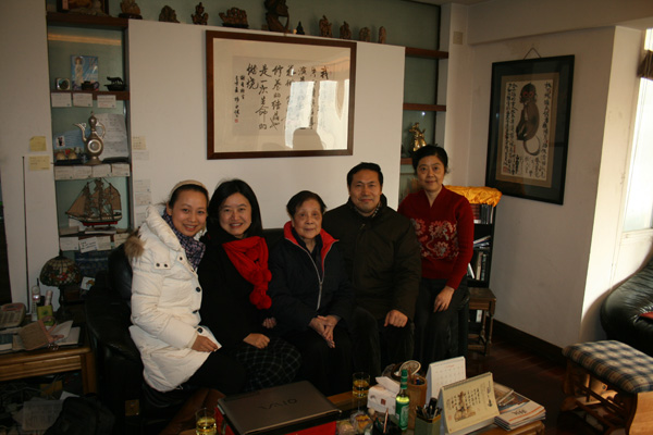 在春节来临、期末之际,1月12日上午,我院院长赵炳翔、党总支书记高亭、党总支副书记兼副院长孙雅艳等领导乘紧张工作的间隙来到已故的著名导演谢晋家中,看望了谢导夫人徐大雯女士和他儿子阿四。学院领导代表学院全体师生送上水果篮和慰问金并向谢导家人提前拜年,致以新年的祝福和亲切的问候。