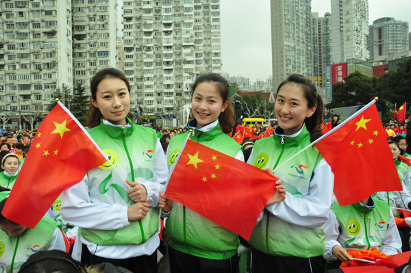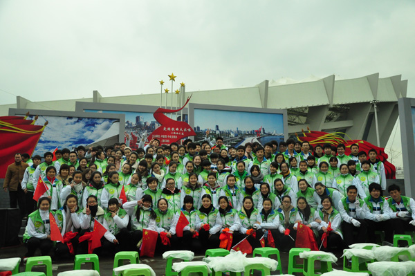 2月28日,由中宣部、中央文明办举办,上海市文明办、徐汇区委、区政府承办的“爱国歌曲大家唱·上海徐汇篇”活动在上海体育馆举行。我院11级表演、播音主持专业的全体同学作为大学生志愿者方阵参与此次活动,展现出了当代青年人的蓬勃朝气和精神面貌。