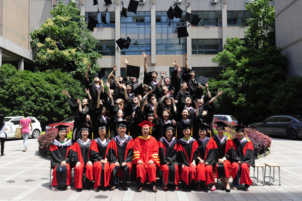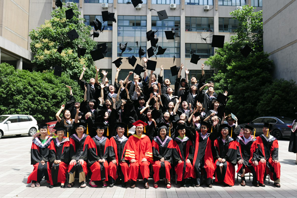 毕业典礼上,当我院所有教师代表从红地毯步入会场时全体学生呐喊欢呼,流下感动的泪水,表达了学生对老师浓浓的感恩之情。我院院长赵炳翔;教授、博导翁敏华老师在主席台就坐为全体主会场学生正冠拨穗。
